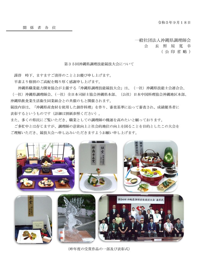 第35回沖縄県調理技能競技大会について